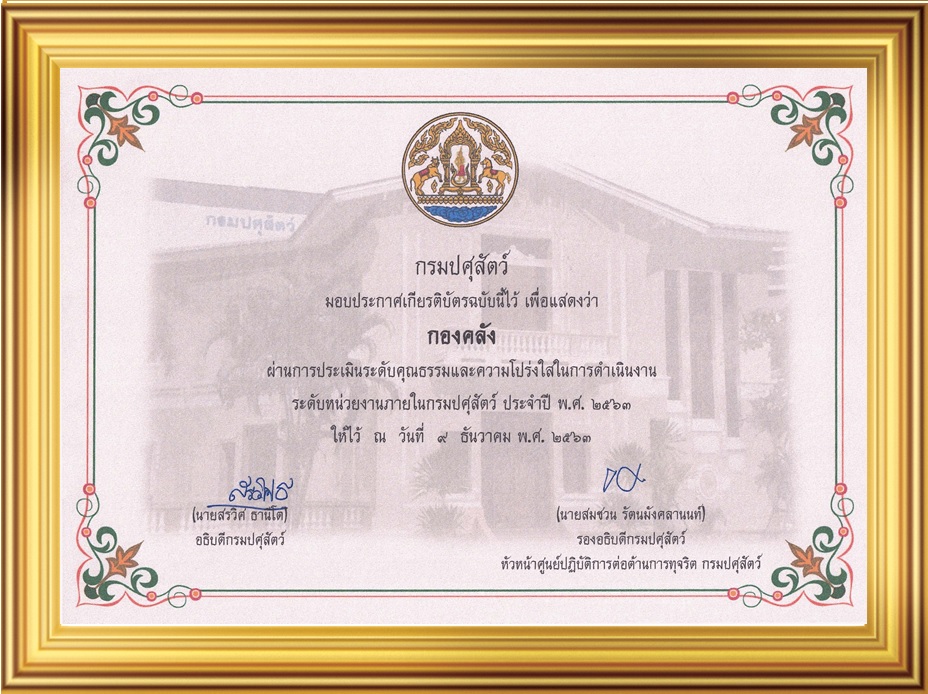 กองคลังผ่านการประเมินระดับคุณธรรมและความโปร่งใสในการดำเนินงาน ประจำปี พ.ศ.2563
