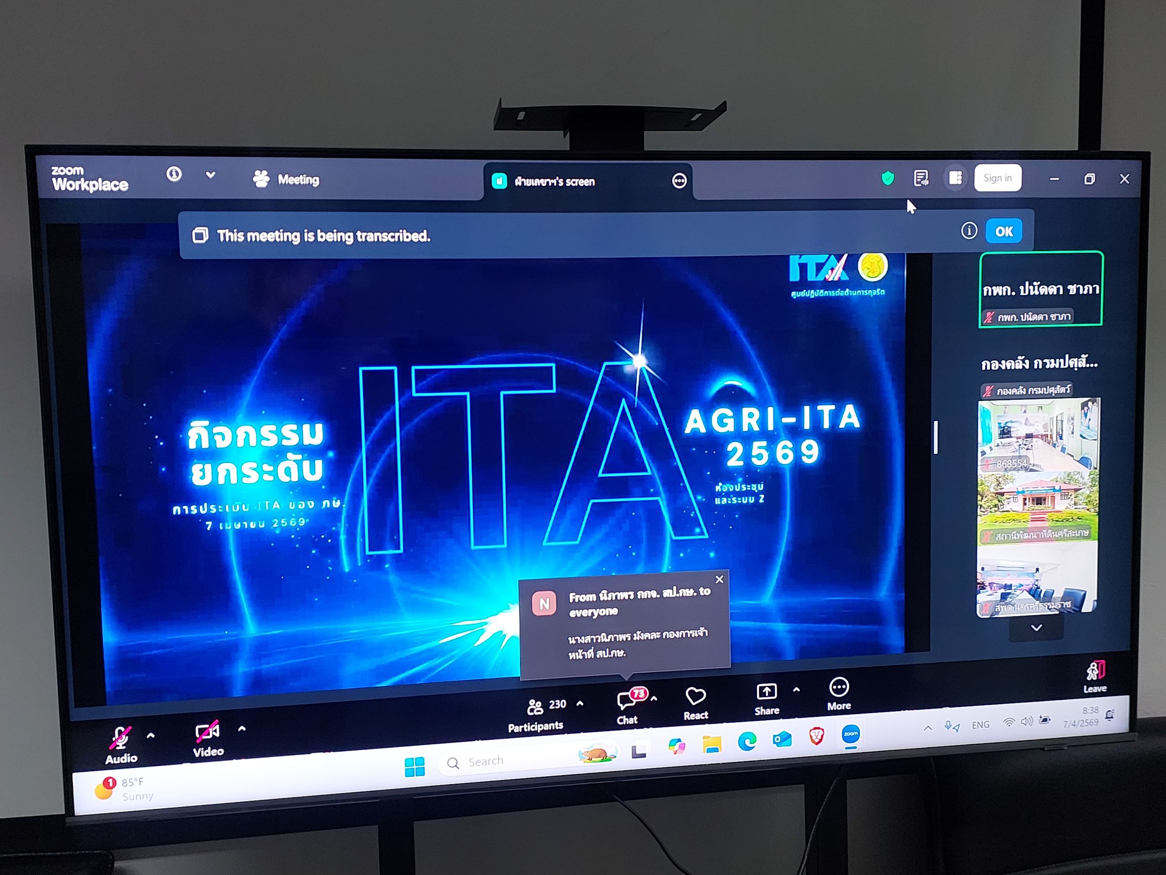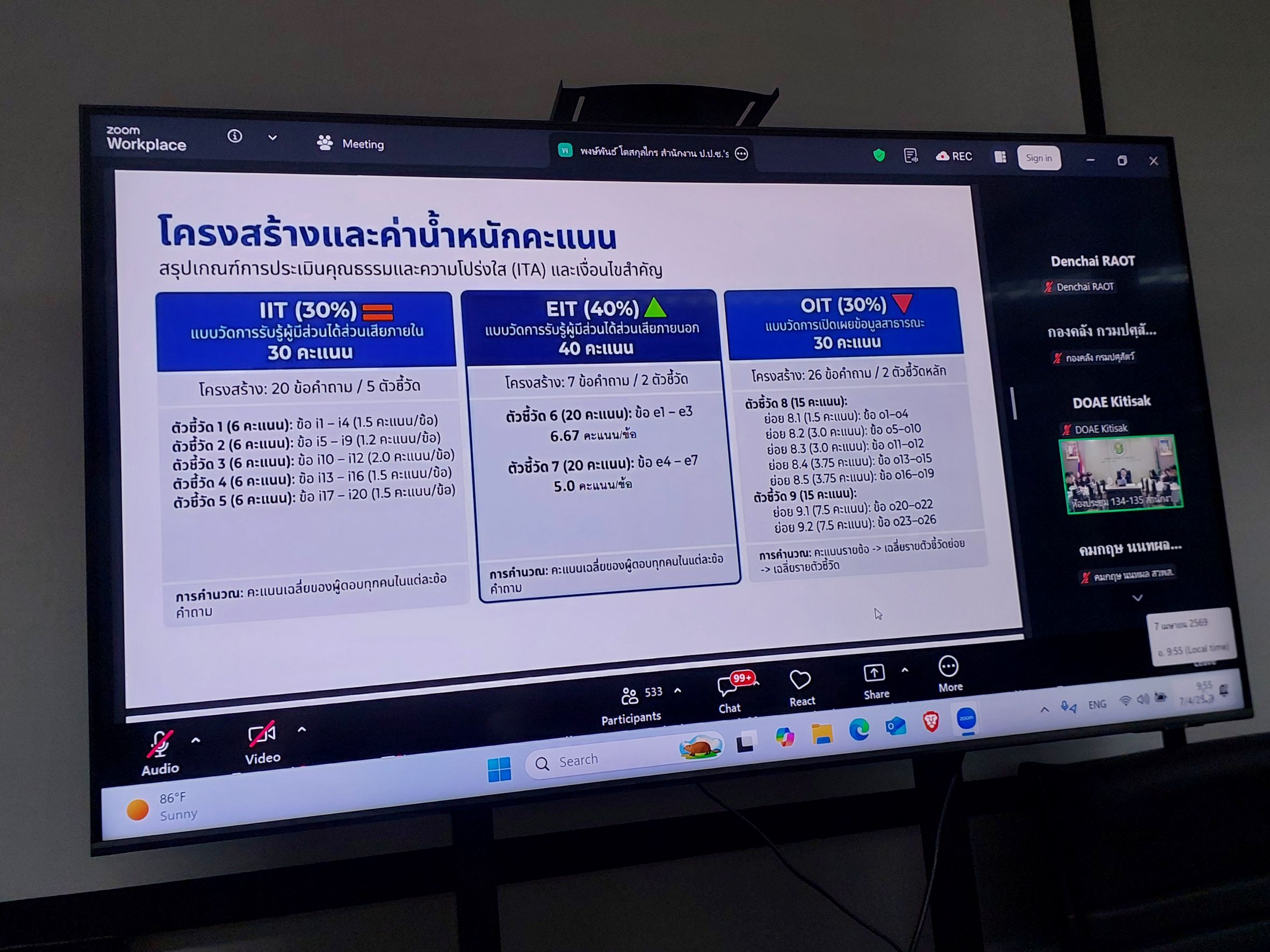 ของกระทรวงเกษตรและสหกรณ์ ผ่านระบบออนไลน์ (Zoom Meeting) โดยมีวัตถุประสงค์หลักเพื่อรับทราบแนวทางการประเมินรูปแบบใหม่ และเทคนิคการยกระดับคะแนน ITA ให้มีประสิทธิภาพสูงสุด