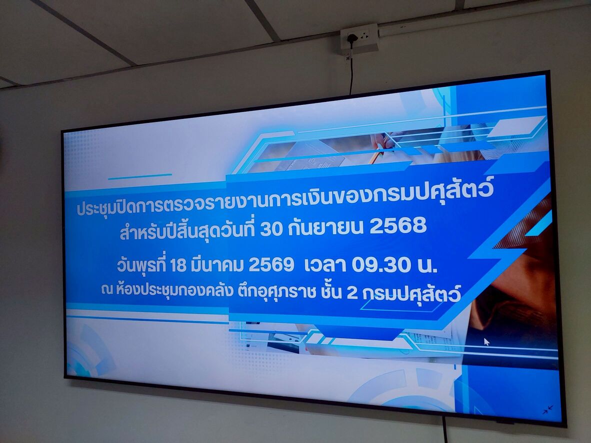 วันพุธที่ 18 มีนาคม พ.ศ. 2569 เวลา 9.30 น. นายพงษ์พันธ์ ธรรมมา รองอธิบดีกรมปศุสัตว์ ให้เกียรติเป็นประธานในการประชุมปิดการตรวจรายงานการเงินของกรมปศุสัตว์ สำหรับปีสิ้นสุดวันที่ 30 กันยายน 2568 ของสำนักงานการตรวจเงินแผ่นดิน ณ ห้องประชุมกองคลัง ชั้น 2 ตึกอุศุภราช กรมปศุสัตว์ โดยมี นางสาวปรารถนา อุนทะอ่อน รักษาราชการแทนผู้อำนวยการกองคลัง พร้อมด้วยเจ้าหน้าที่จากสำนักงานการตรวจเงินแผ่นดิน (สตง.) และเจ้าหน้าที่ที่เกี่ยวข้องเข้าร่วมการประชุมอย่างพร้อมเพรียงกัน