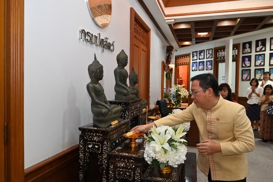 สำหรับกิจกรรมในวันนี้ ประกอบด้วย อธิบดีกรมปศุสัตว์นำไหว้พระพุทธอุดมสุข ไหว้ศาลพระภูมิ และไหว้ศาลตายาย นอกจากนี้อธิบดีกรมปศุสัตว์เป็นประธานในพิธีทำบุญตักบาตรข้าวสาร อาหารแห้งแด่พระภิกษุสงฆ์ จำนวน 9 รูป เพื่อความเป็นศิริมงคลแก่ผู้บริหาร ข้าราชการ และเจ้าหน้าที่ของกรมปศุสัตว์ พร้อมสืบสานขนบธรรมเนียมประเพณีอันดีงามของไทย