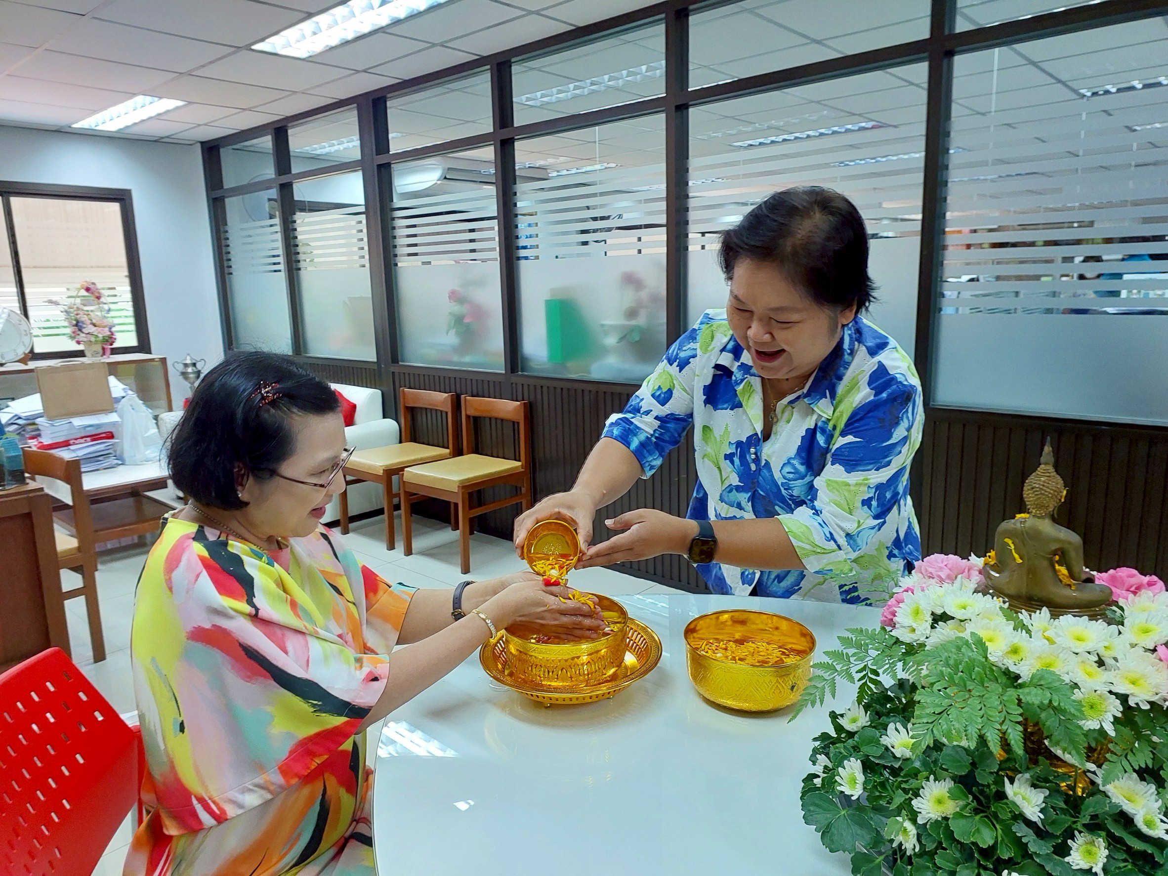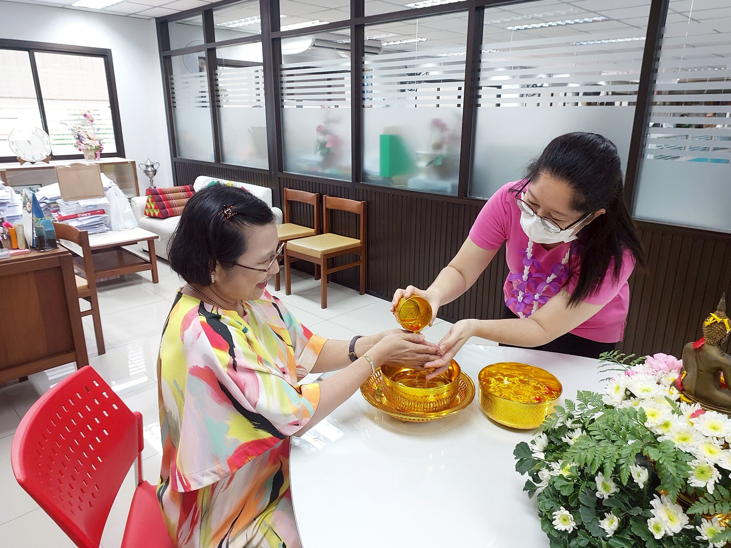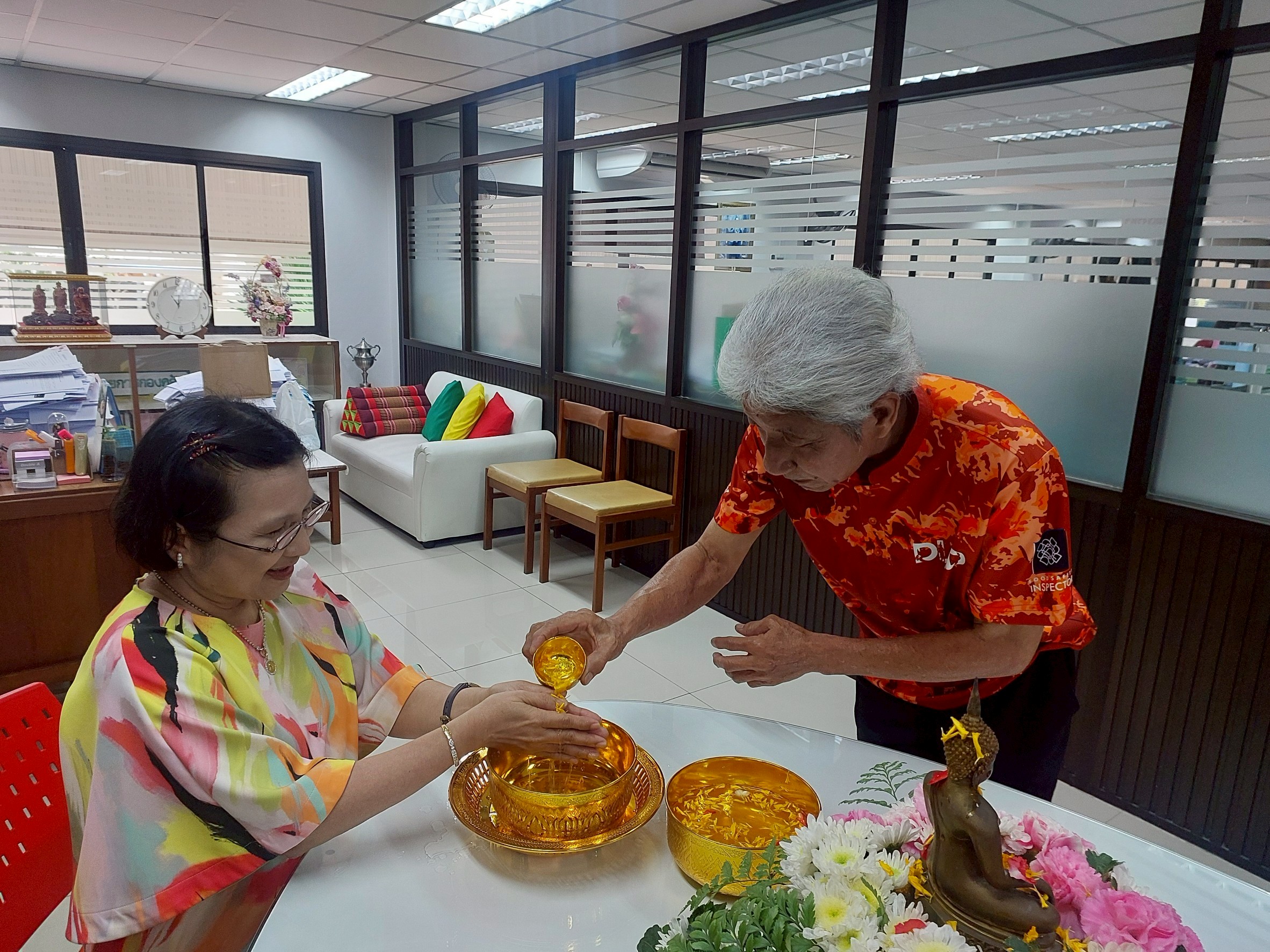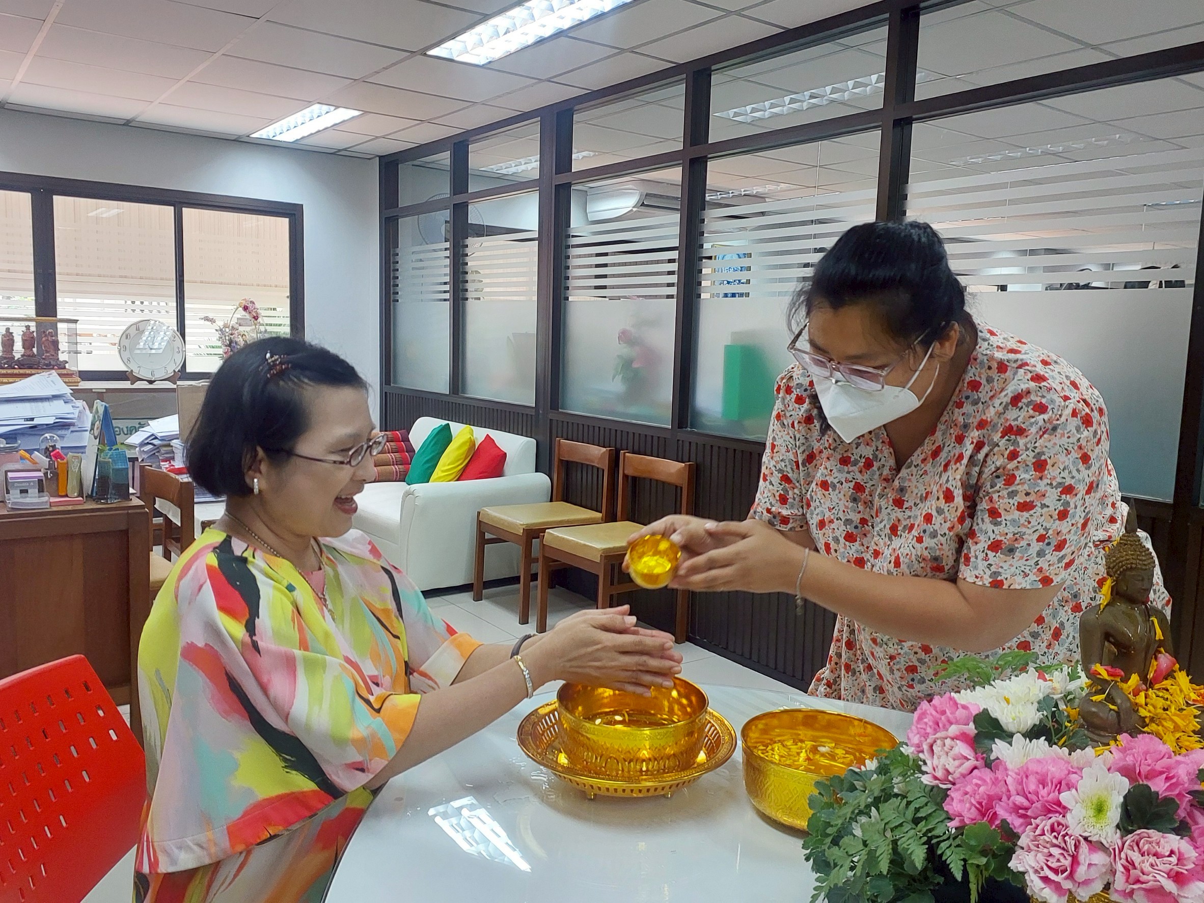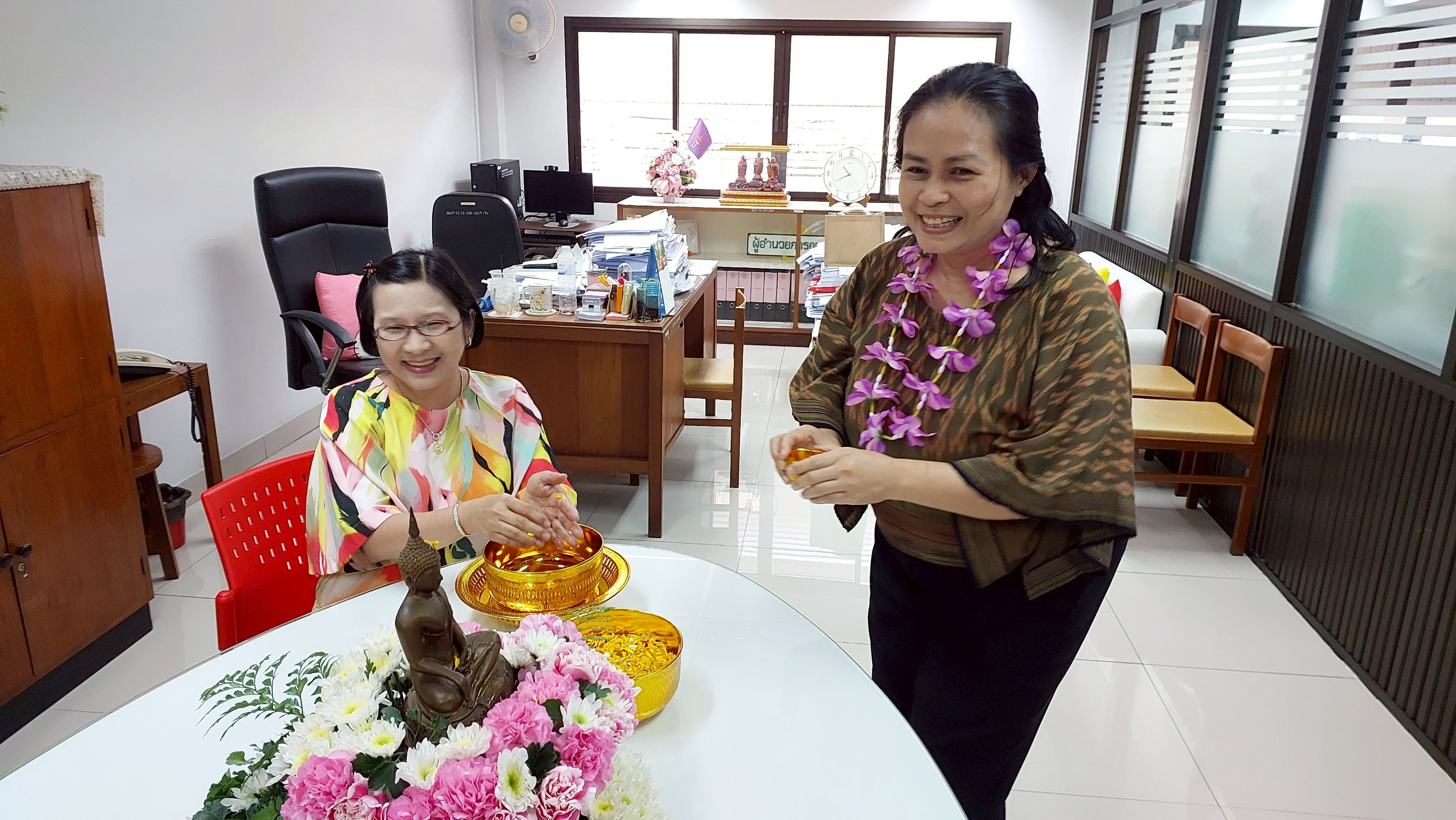 กองคลัง จัดกิจกรรมสรงน้ำพระและรดน้ำขอพรผู้อำนวยการกองคลัง เนื่องในวันสงกรานต์