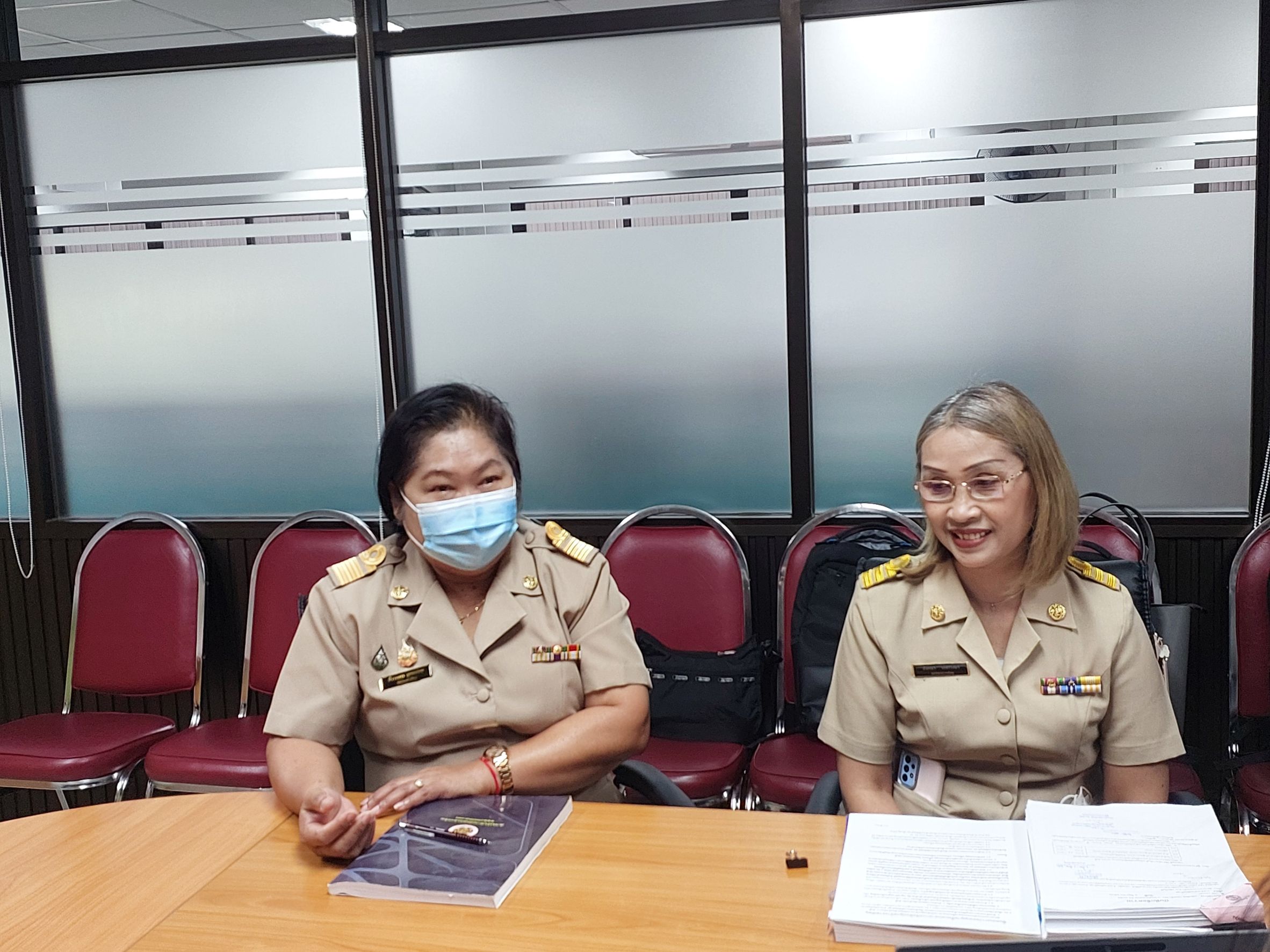 และนางอังคณา เหล่าวงษา กลุ่มพัสดุ ถ่ายทอดความรู้ในการปฏิบัติงานด้านการจำหน่ายพัสดุ