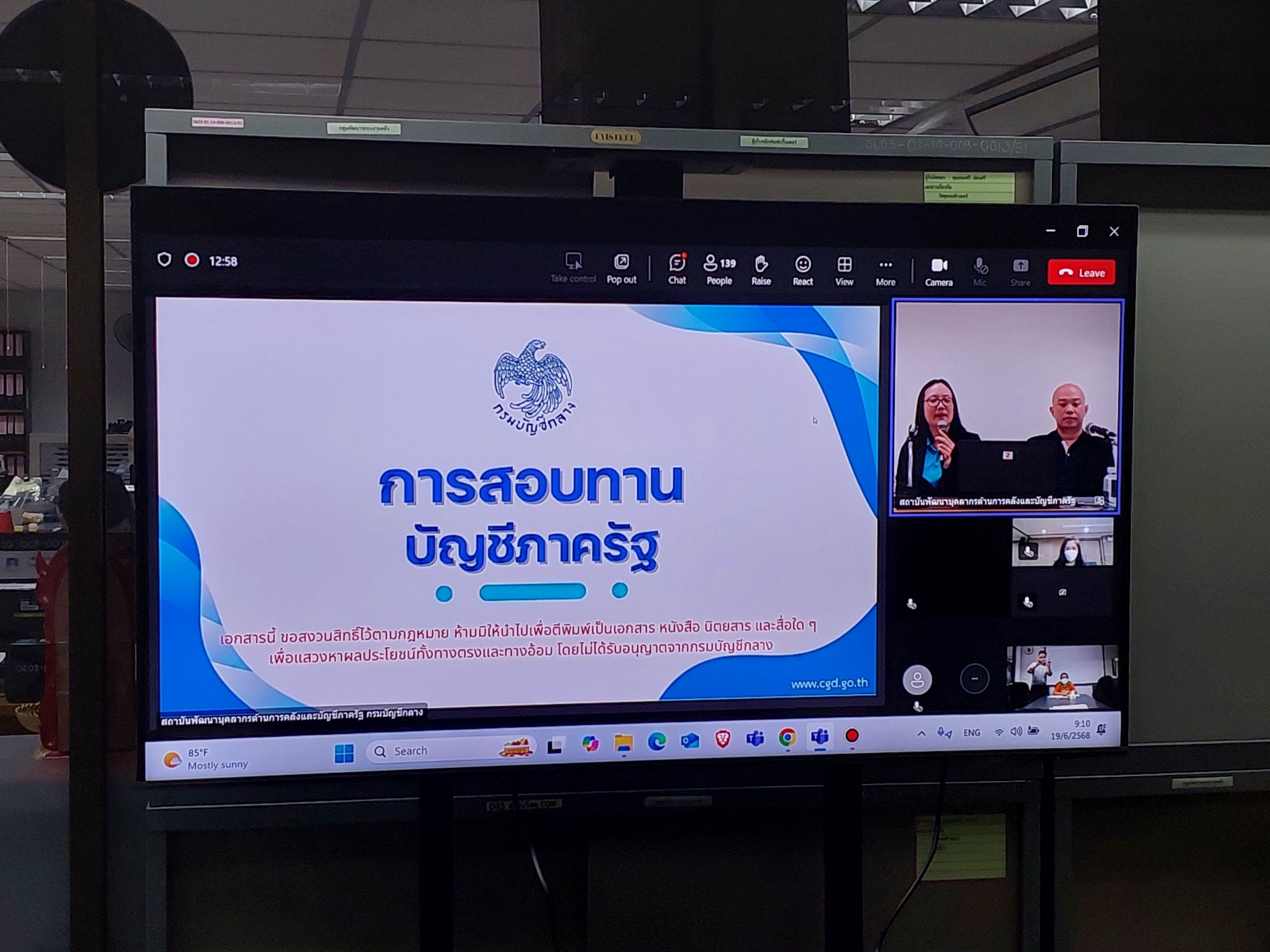กองคลังเข้ารับการฝึกอบรม โครงการฝึกอบรมการสอบทานและแก้ไขปัญหาข้อผิดพลาดทางบัญชี รุ่นที่ 1 ผ่านระบบ Microsoft Teams ออนไลน์