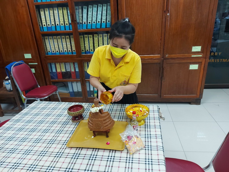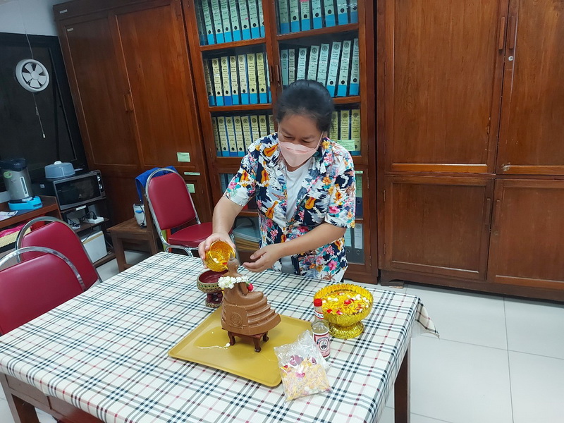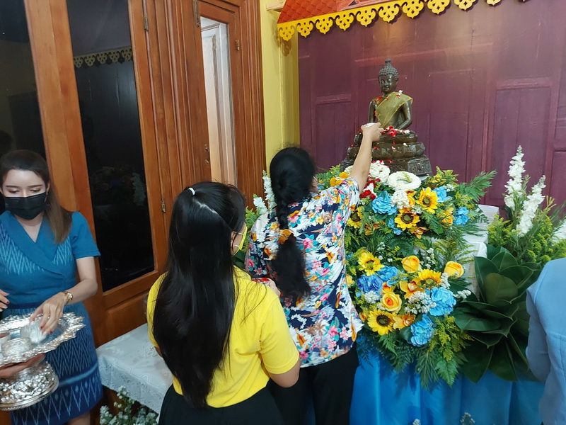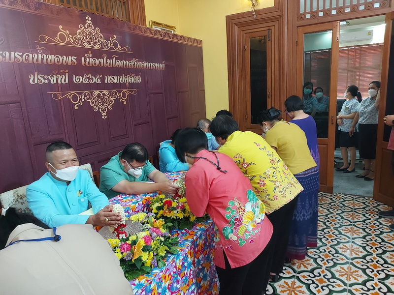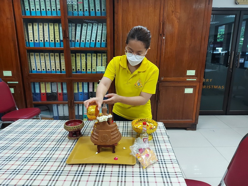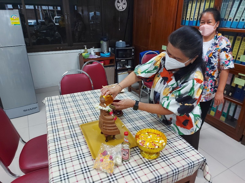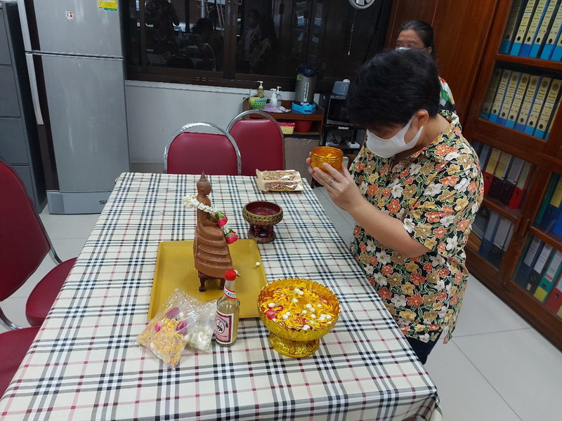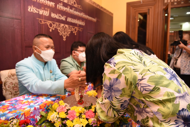 วันจันทร์ที่ 11 เมษายน 2565 นายสัตวแพทย์สรวิศ ธานีโต อธิบดีกรมปศุสัตว์ พร้อมคณะผู้บริหารฯ กราบสักการะขอพรพระพุทธอุดมสุข และสิ่งศักดิ์สิทธิ์ประจำกรม จัดพิธีทำบุญถวายภัตตาหารเช้าแด่พระสงฆ์ 9 รูป โดยมีเจ้าหน้าที่กรมปศุสัตว์ร่วมสรงน้ำพระ และ รดน้ำขอพรฯ เพื่อความเป็นสิริมงคล และสืบสานประเพณีไทยเนื่องในวันสงกรานต์ โดยได้ดำเนินการภายใต้มาตรการป้องกันโควิค-19 ณ กรมปศุสัตว์ พญาไท กรุงเทพฯ