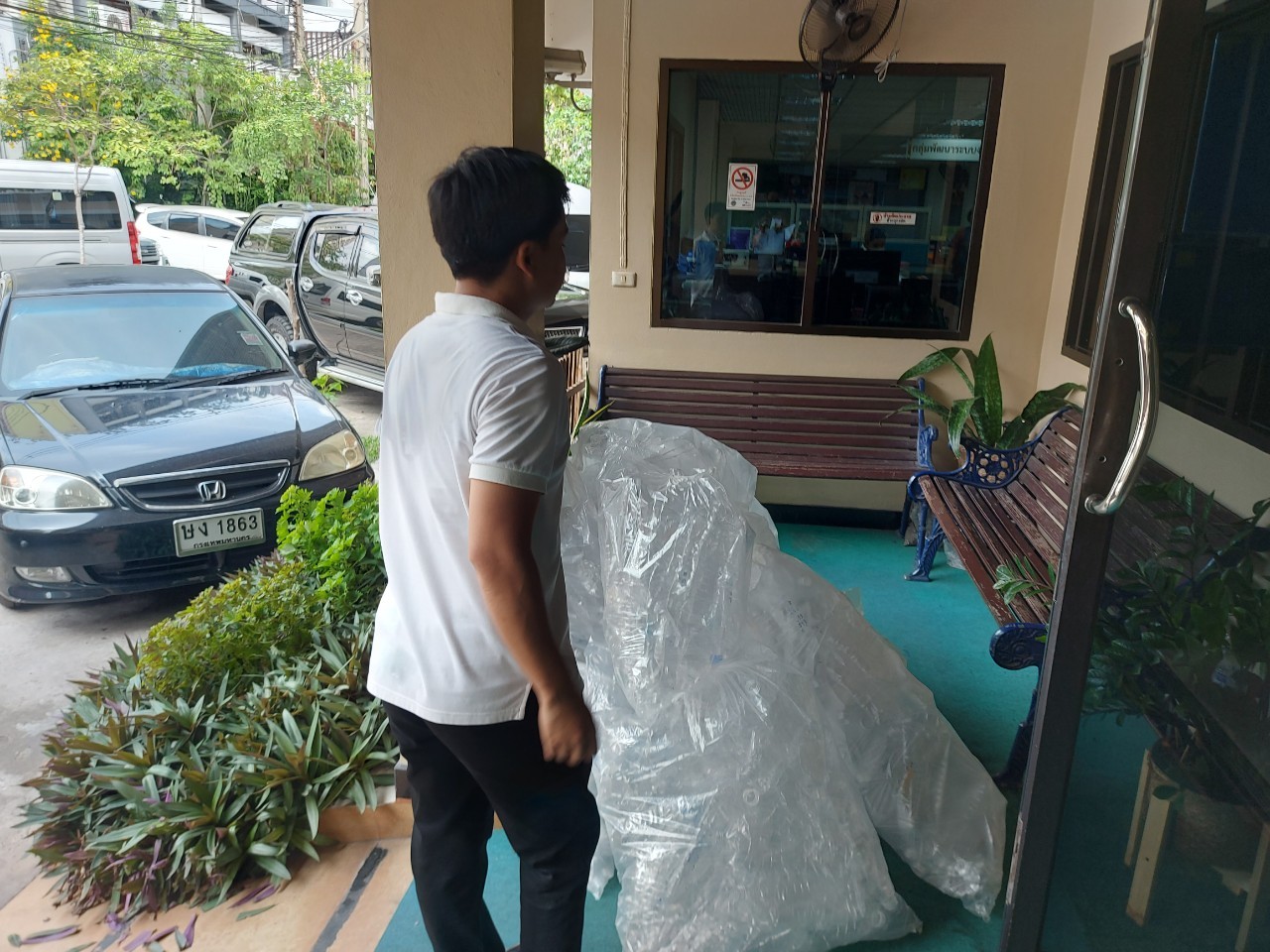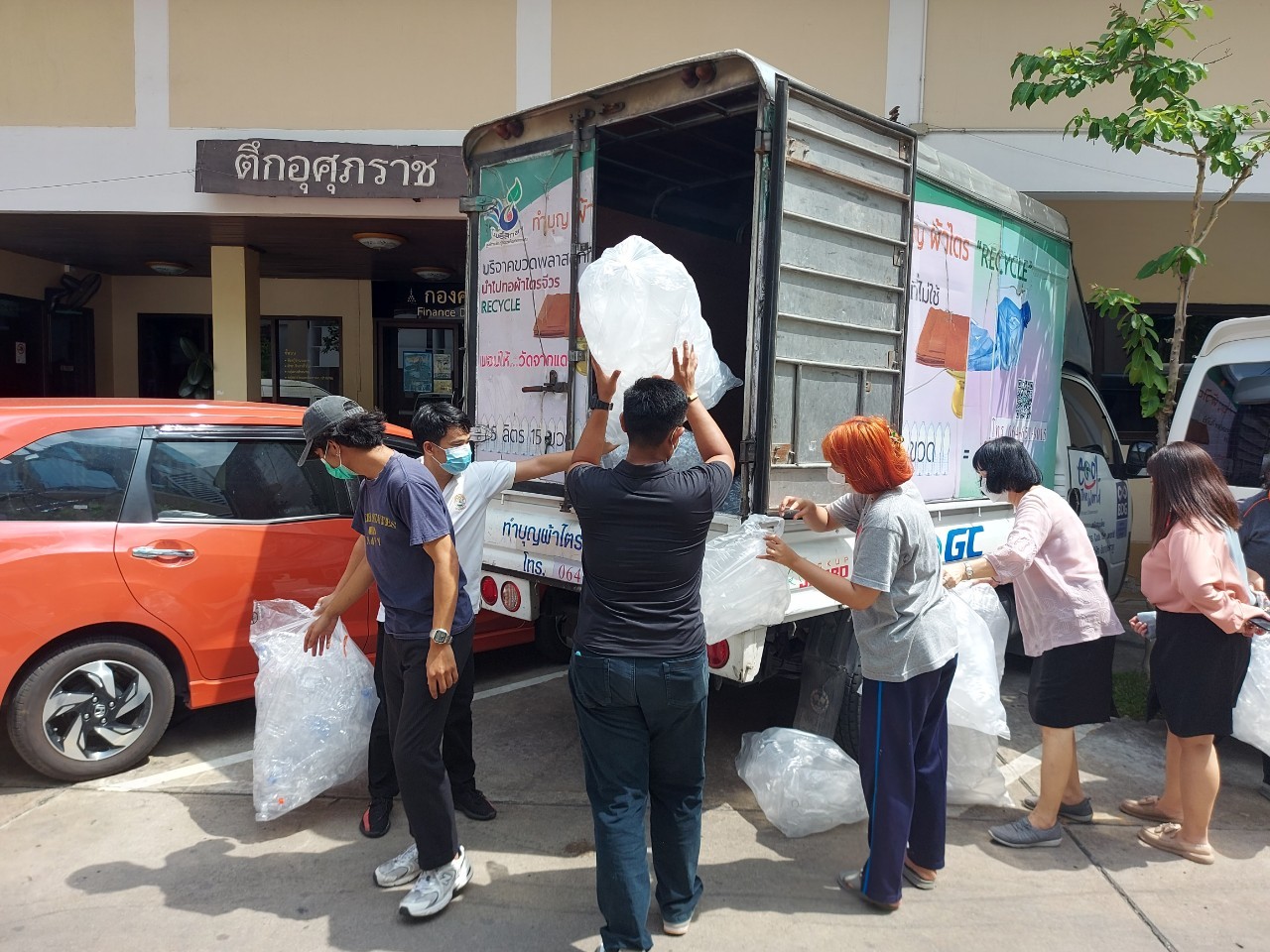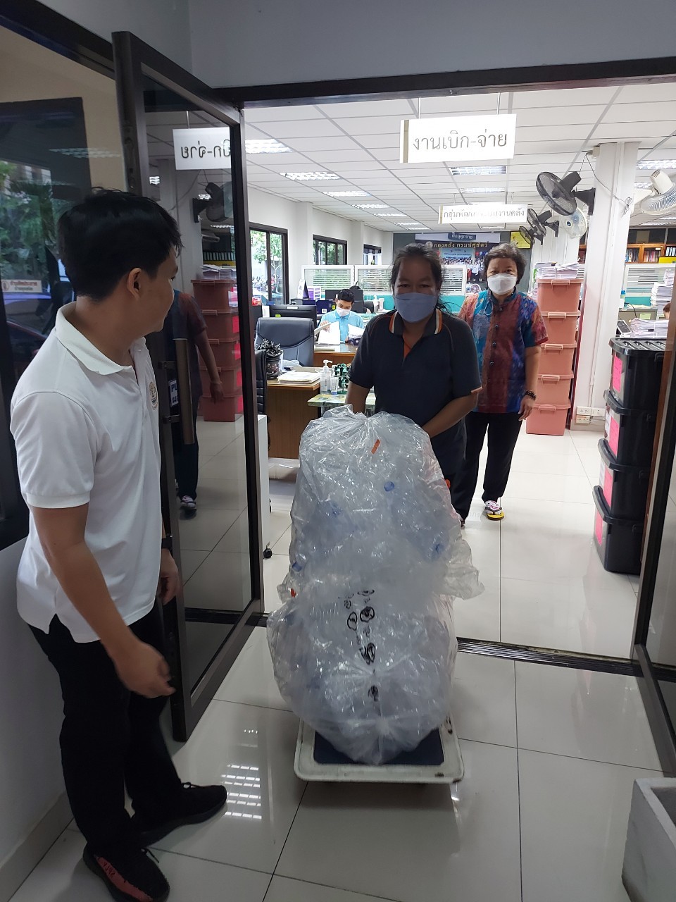 กองคลังร่วมบริจาคขวดพลาสติกที่ไม่ใช้แล้ว จำนวน 10 ถุง ให้วัดจากแดง อ.พระประแดง จ.สมุทรปราการ