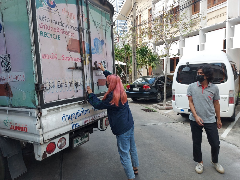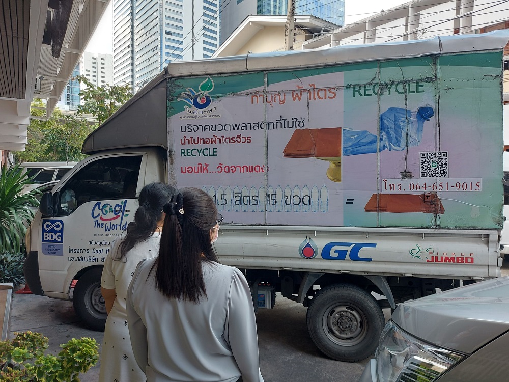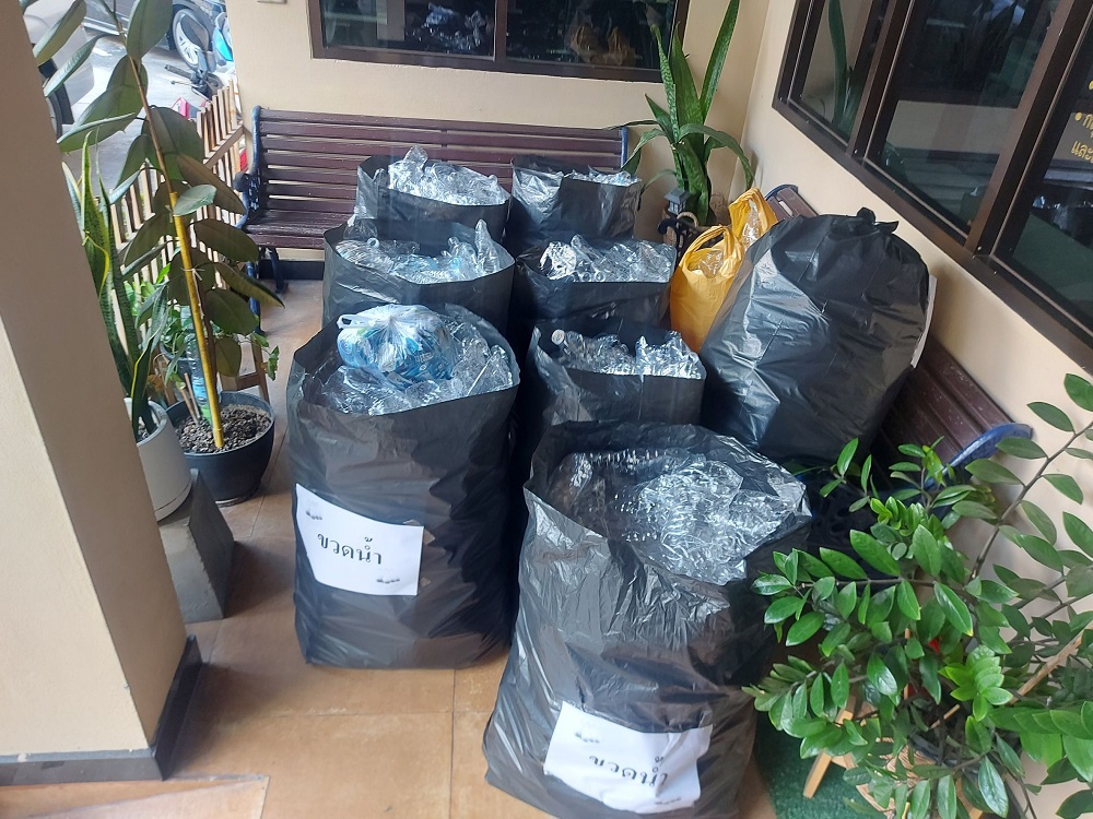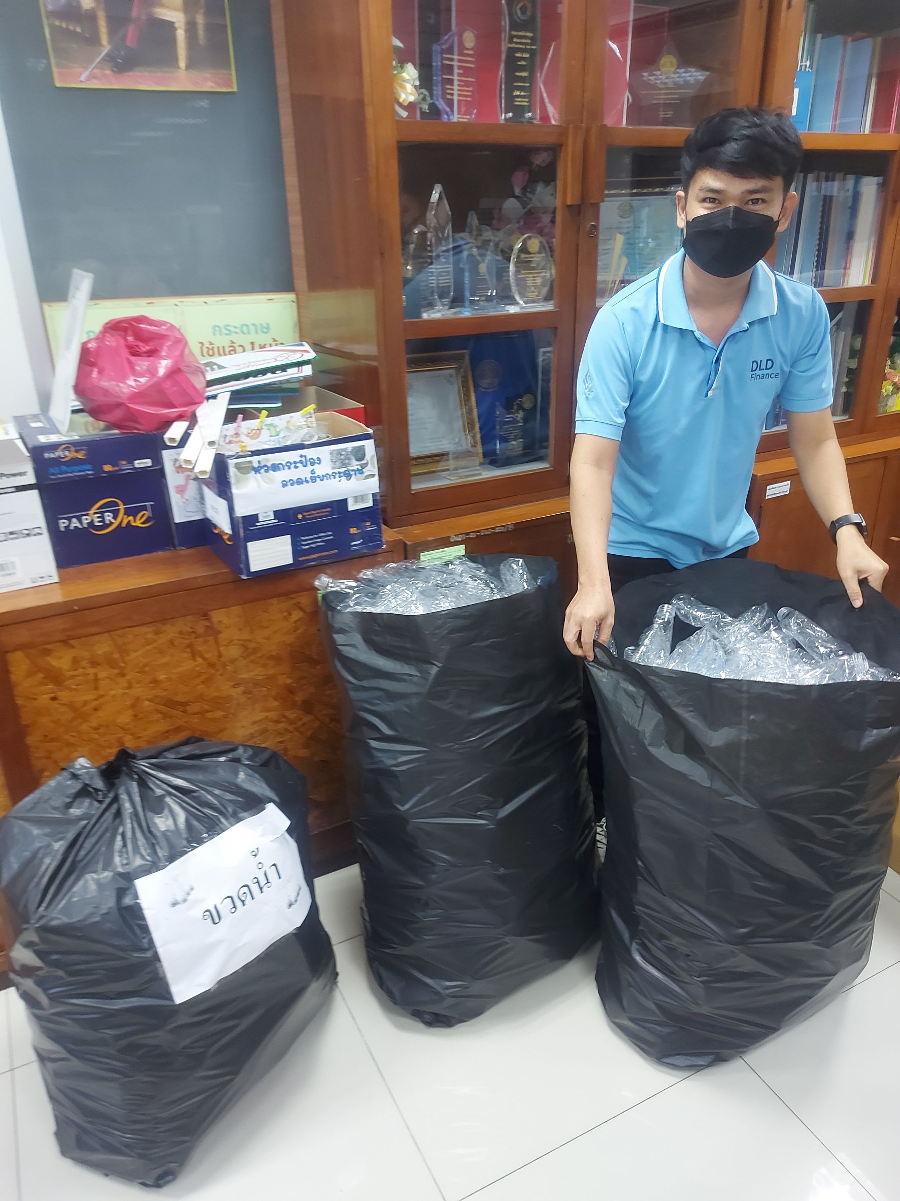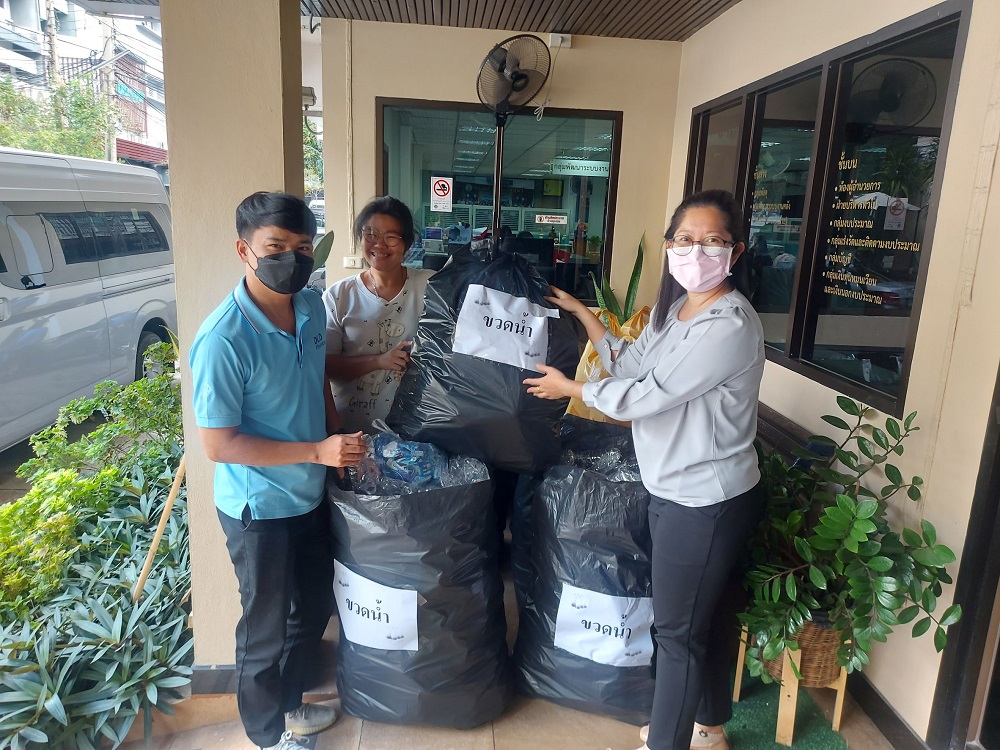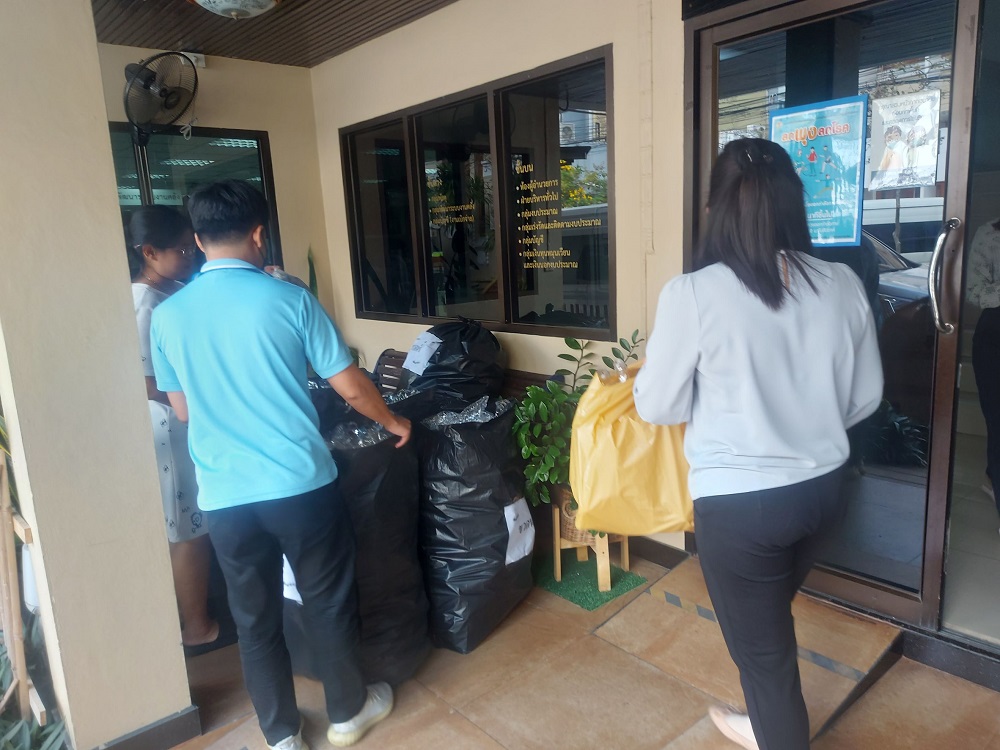 กองคลังรวมบริจาคขวดน้ำพลาสติกให้วัดจากแดง เพื่อนำไปทอผ้าไตรจีวร