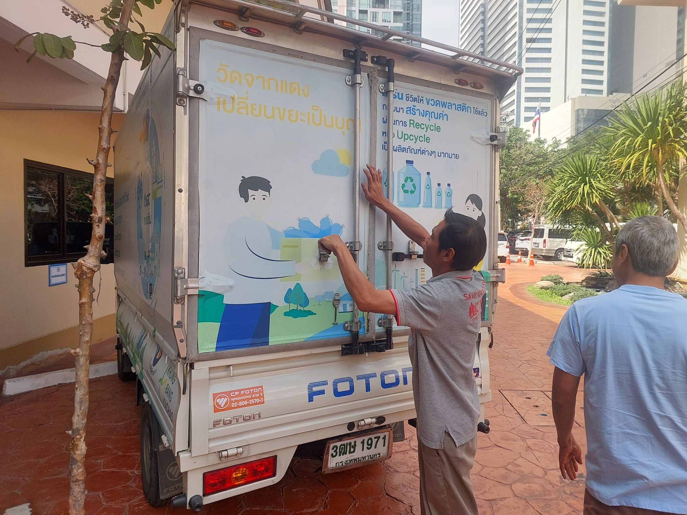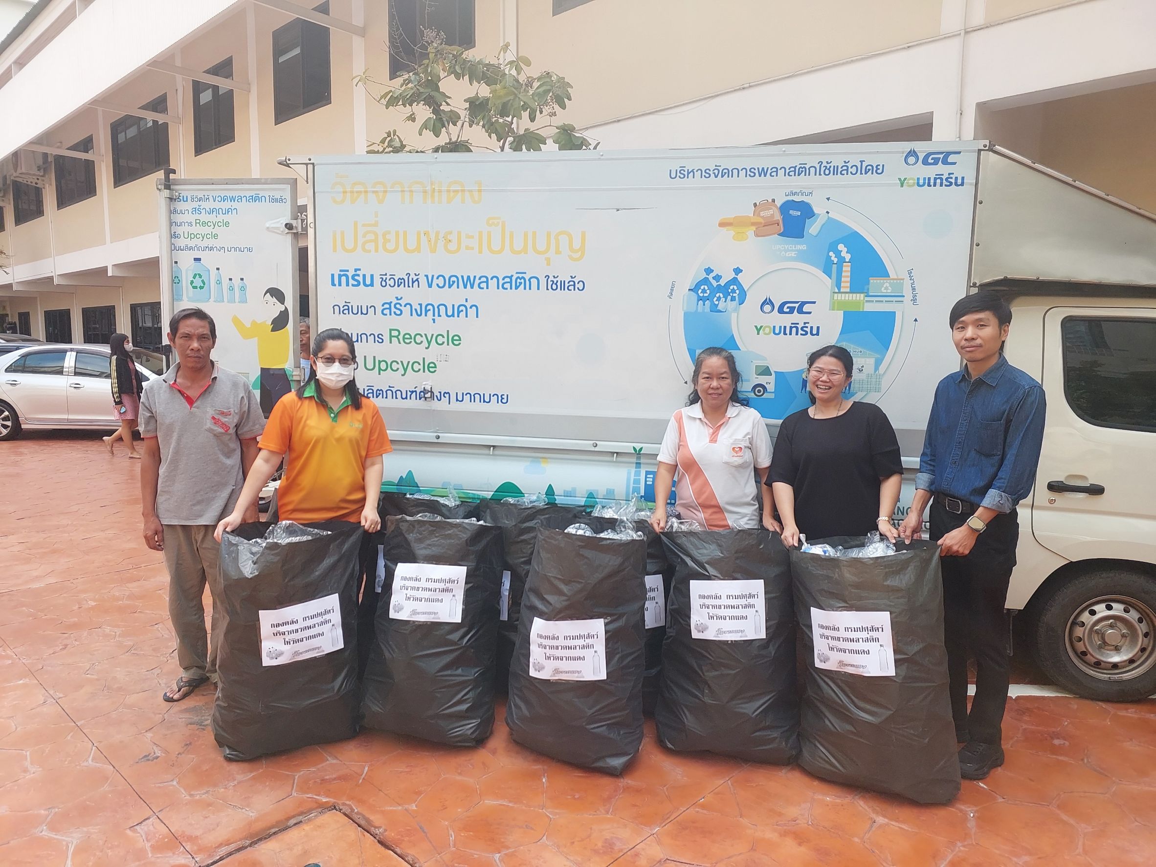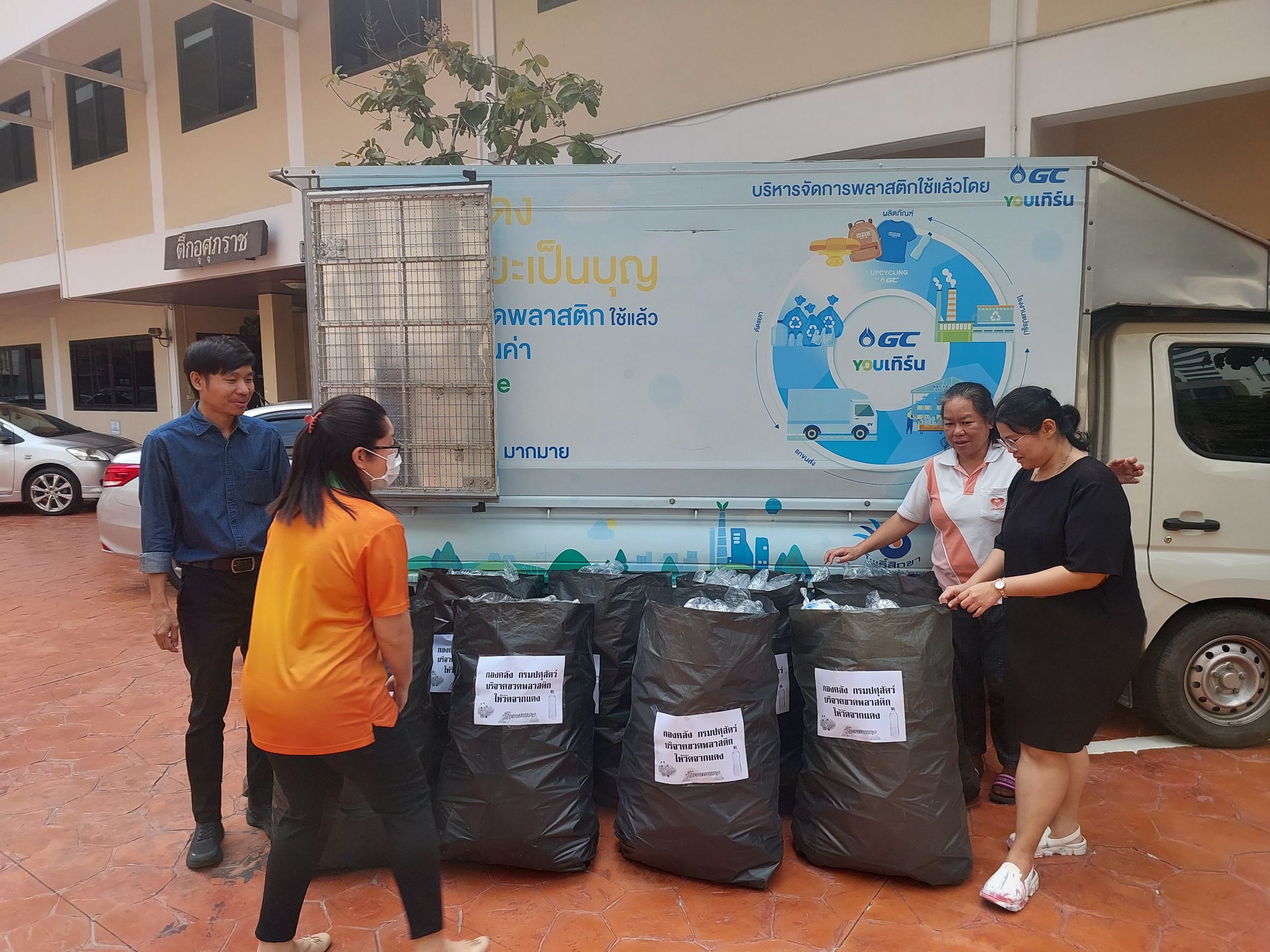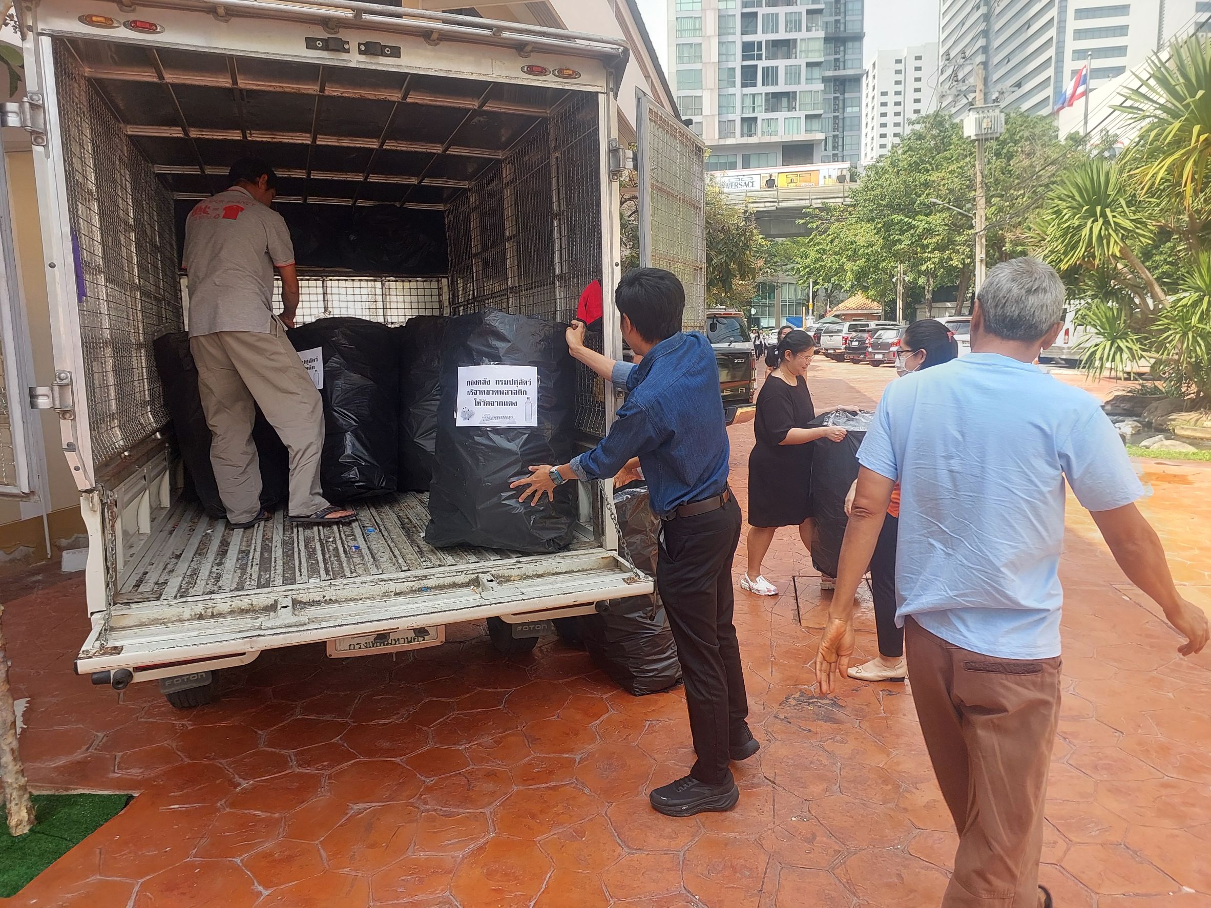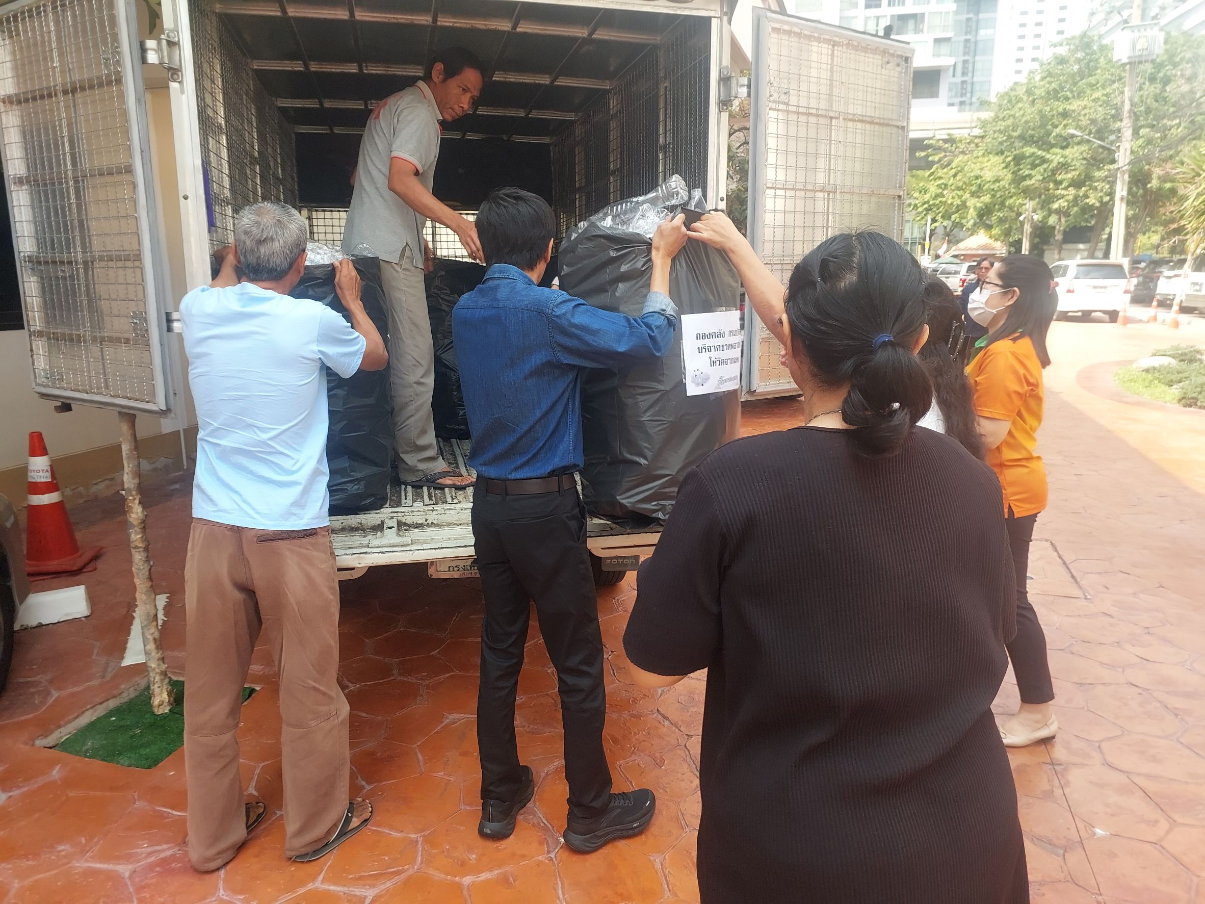 กองคลังร่วมบริจาคขวดน้ำพลาสติกให้วัดจากแดง เพื่อนำขวดไปรีไซเคิลเป็นผ้าไตรจีวร